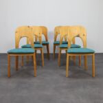 The sleek wooden frames provide both stability and comfort, while the gently curved backrests encourage relaxed dining. A perfect fit for both contemporary and vintage-inspired interiors.