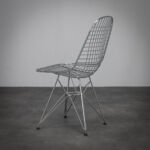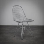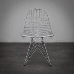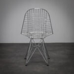 The Wire Chair by Charles Eames and Ray Eames is a refined exploration of transparency, structure and industrial clarity. Designed in 1951, the chair reduces the traditional shell form to an open wire grid, maintaining ergonomic comfort while exposing its construction.