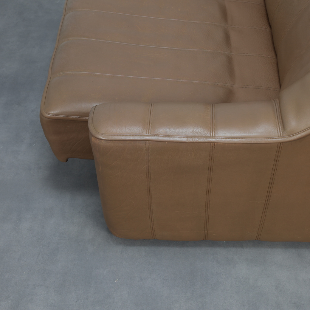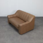 The supple, natural leather with its deep patina reflects the artisanal hand-stitching and generous proportions that made De Sede synonymous with understated sophistication. Its softly contoured silhouette and impeccable construction express a sense of timeless modernism tactile, inviting, and enduringly elegant.