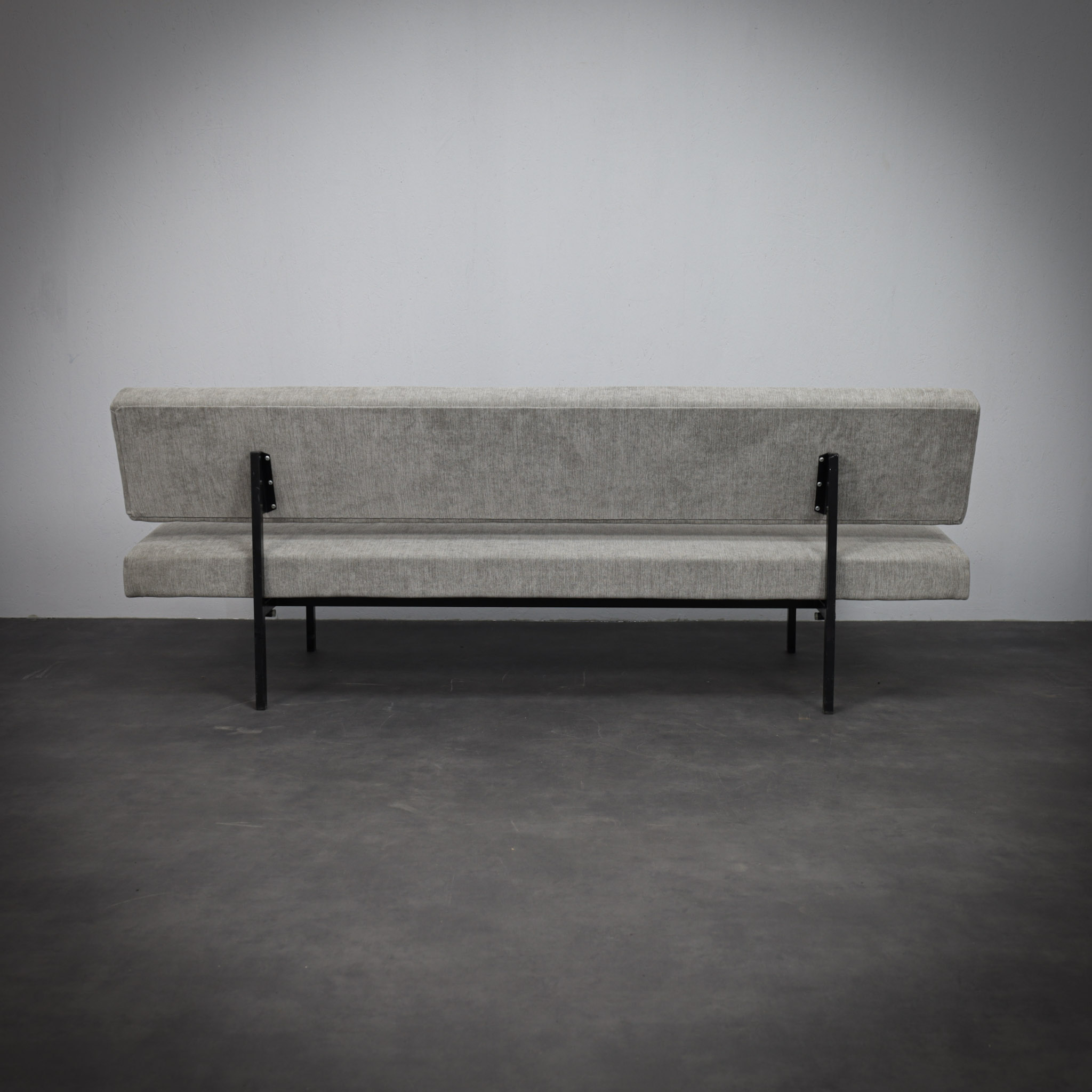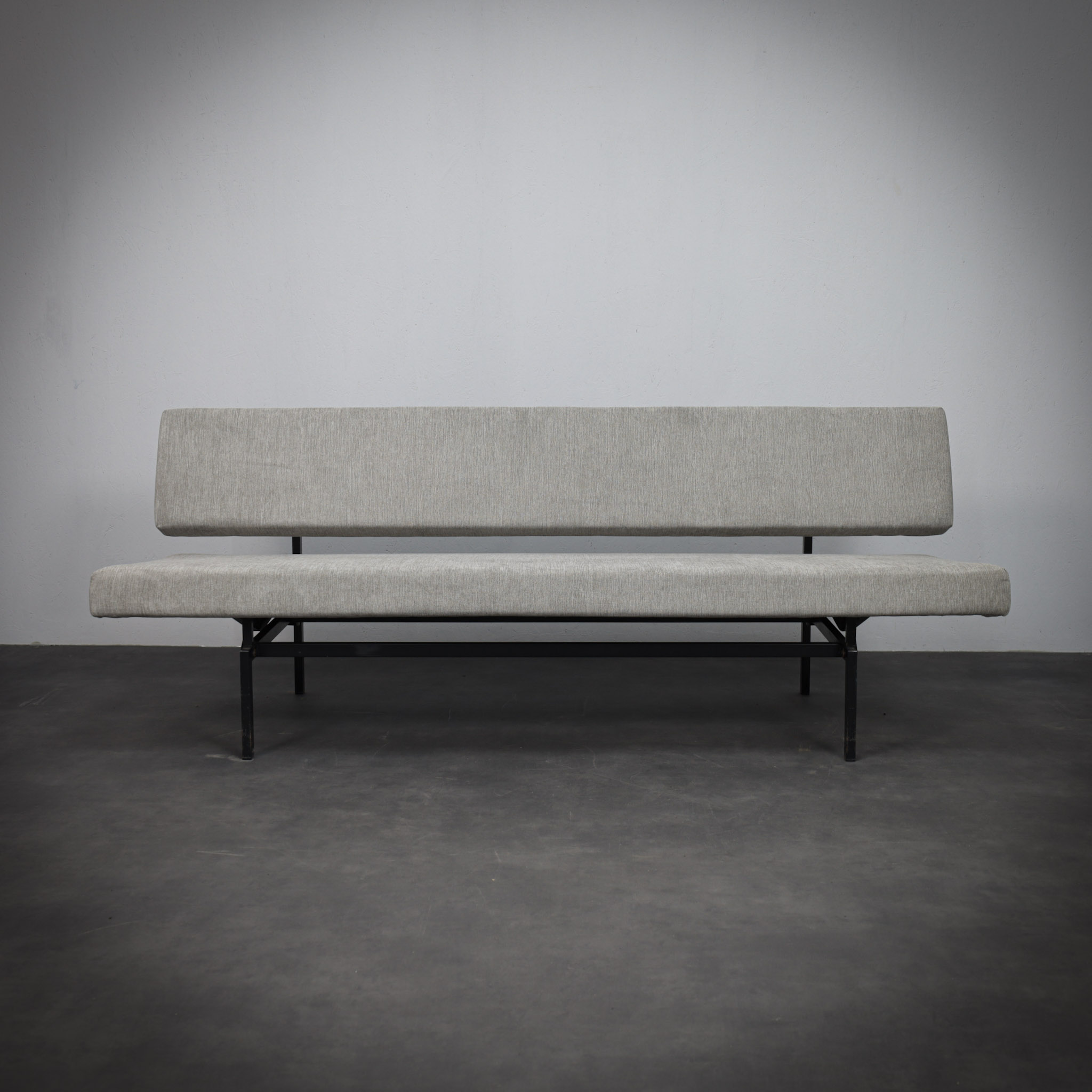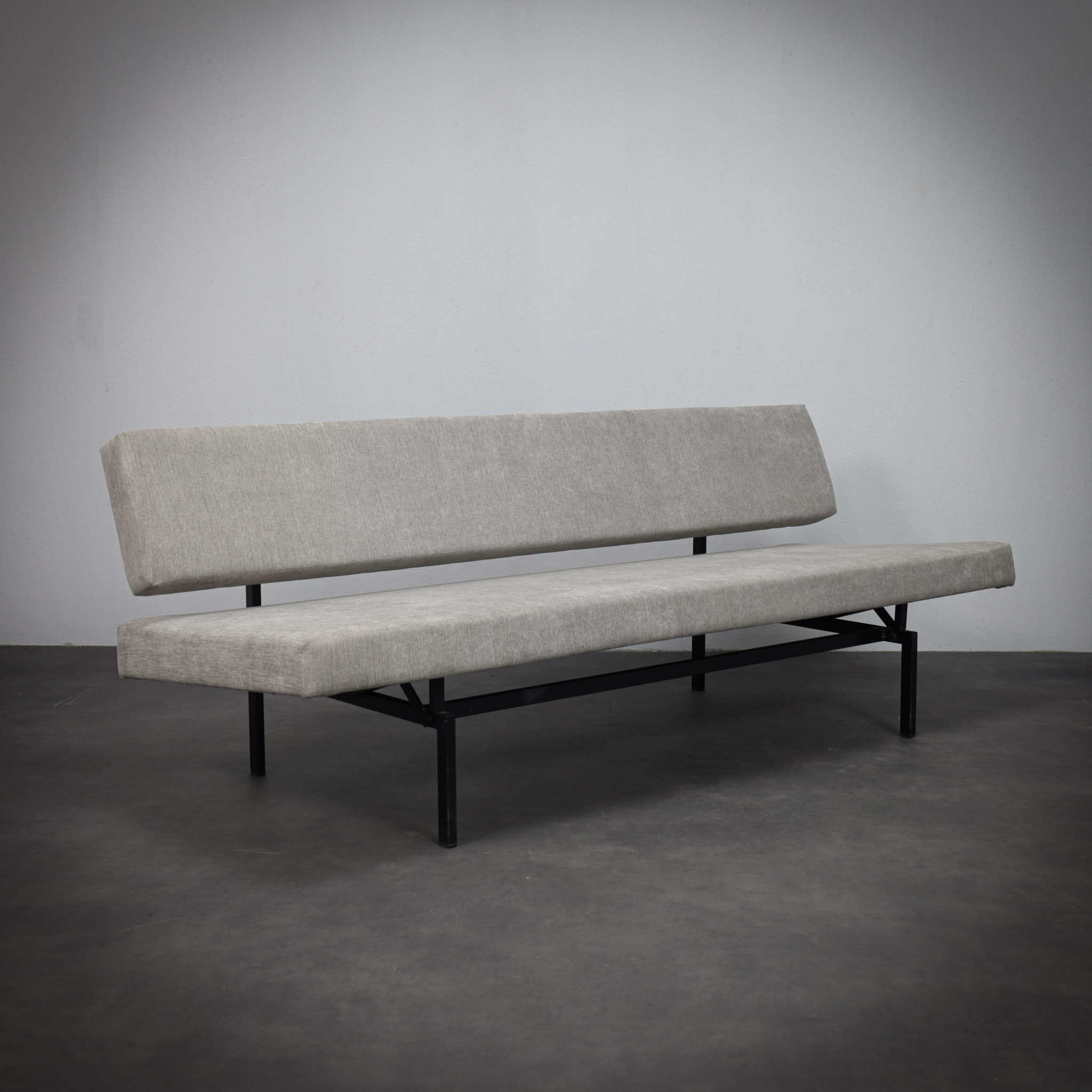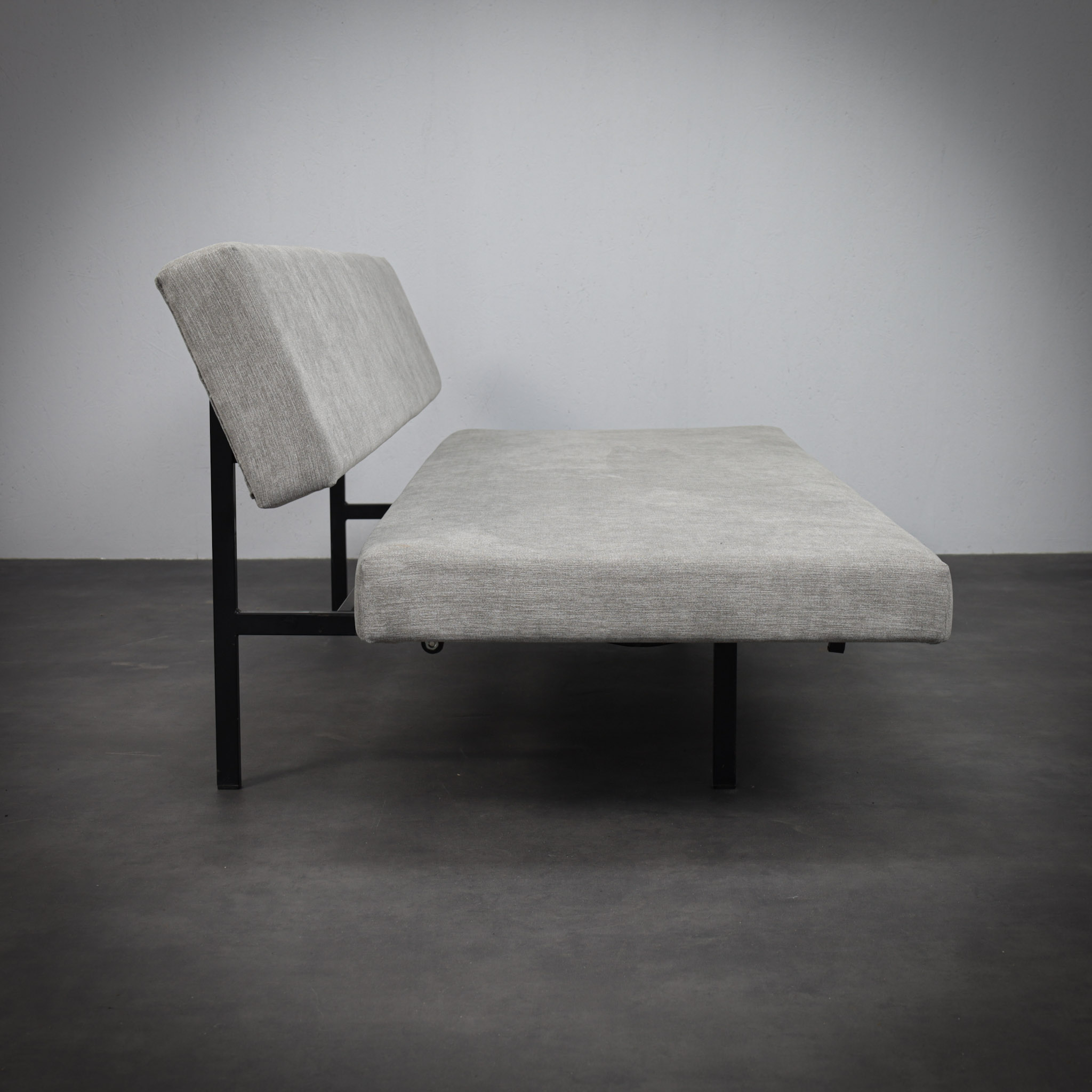 This minimalist sofa/daybed by Dutch designer Gijs van der Sluis reflects the rational and architectural design language associated with Gispen furniture in the 1960s. The design is defined by its strong horizontal lines and restrained construction, resulting in a piece that feels both light and structurally precise.