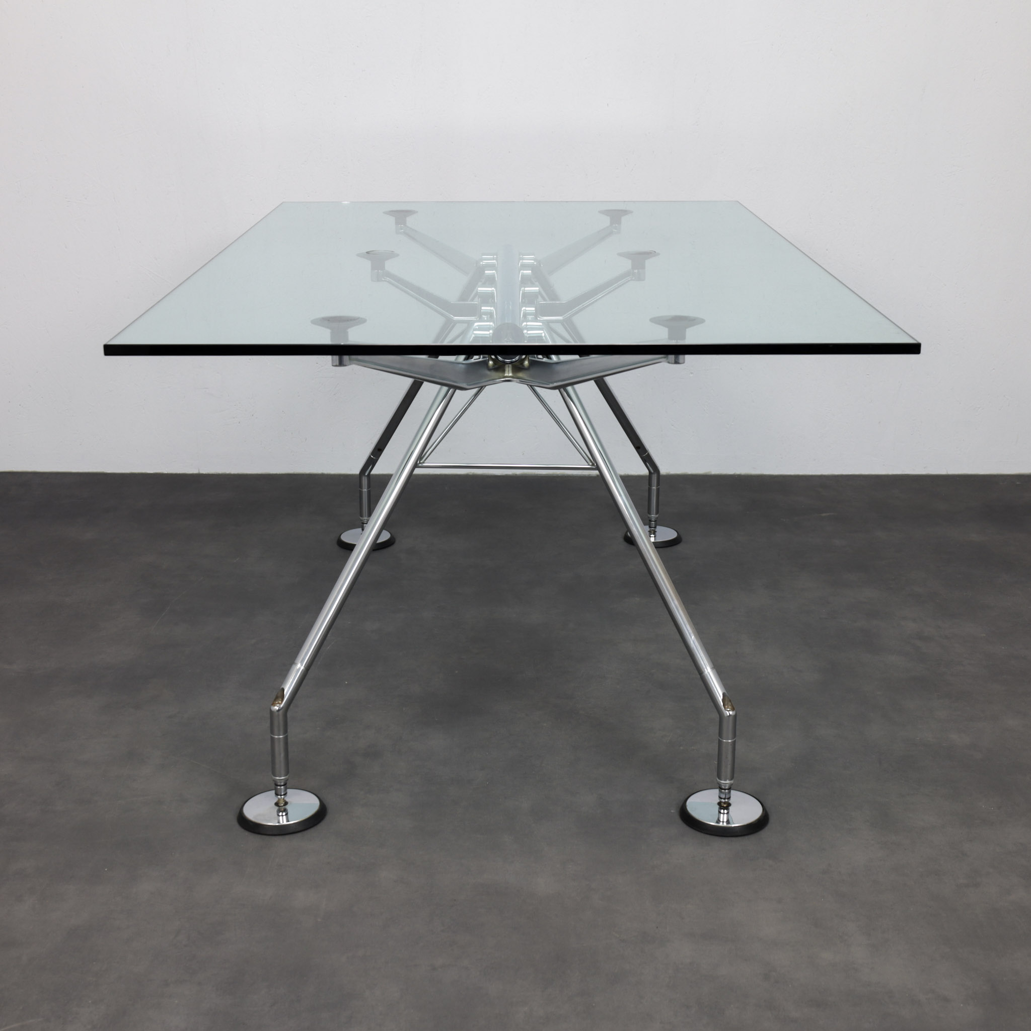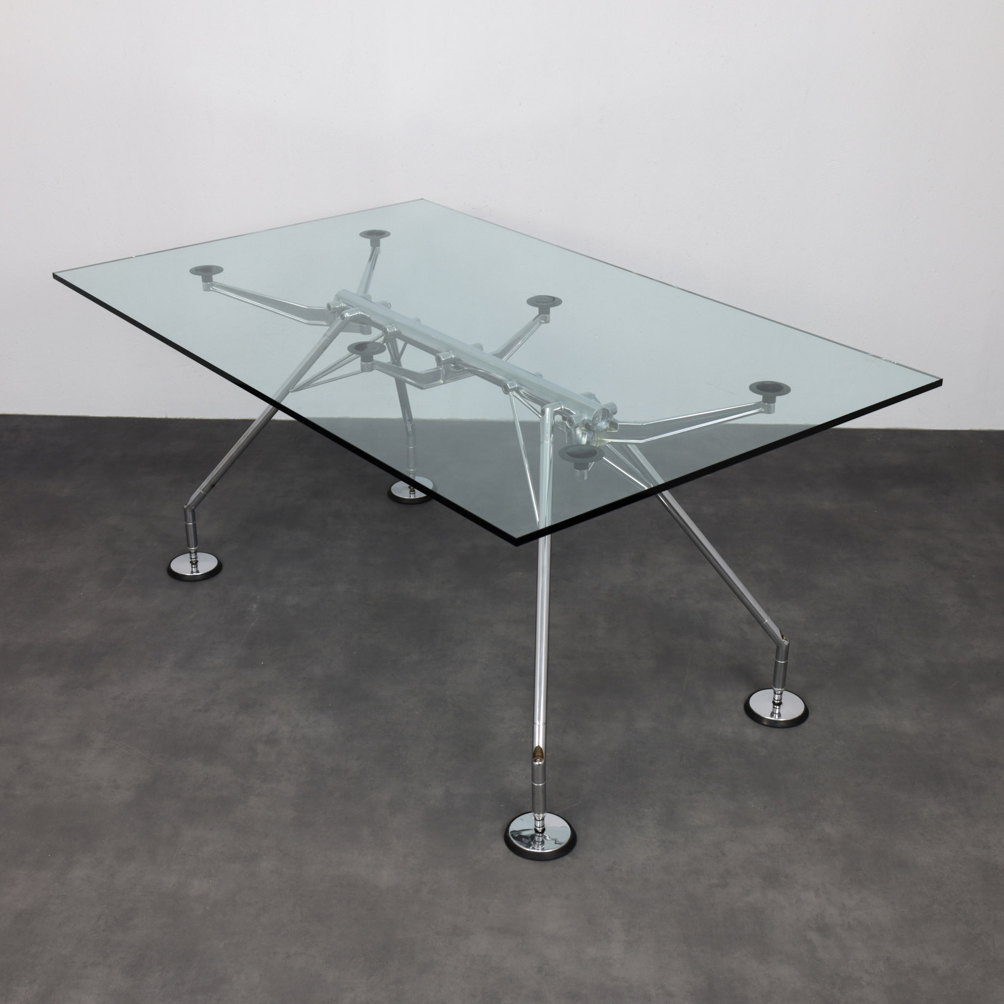 Produced by Tecno, this example from 2004 retains the technical elegance that made the Nomos system a benchmark in late 20th-century design. The table balances industrial precision with minimal restraint, functioning as both working surface and structural statement.