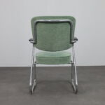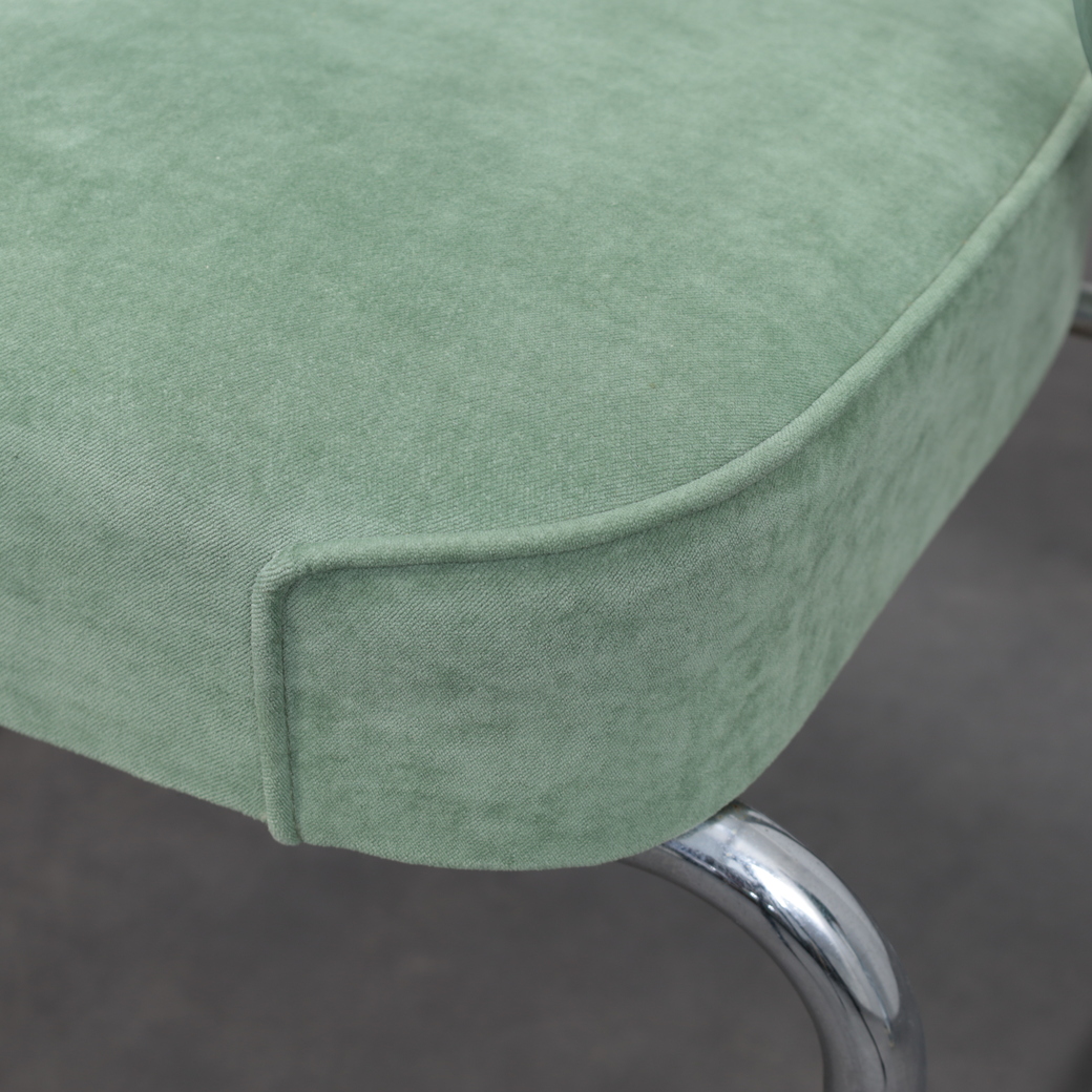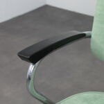 The olove soft green upholstery enhances the architectural form while adding a subtle mid-century colour accent, making these chairs suitable for both residential and curated design interiors.