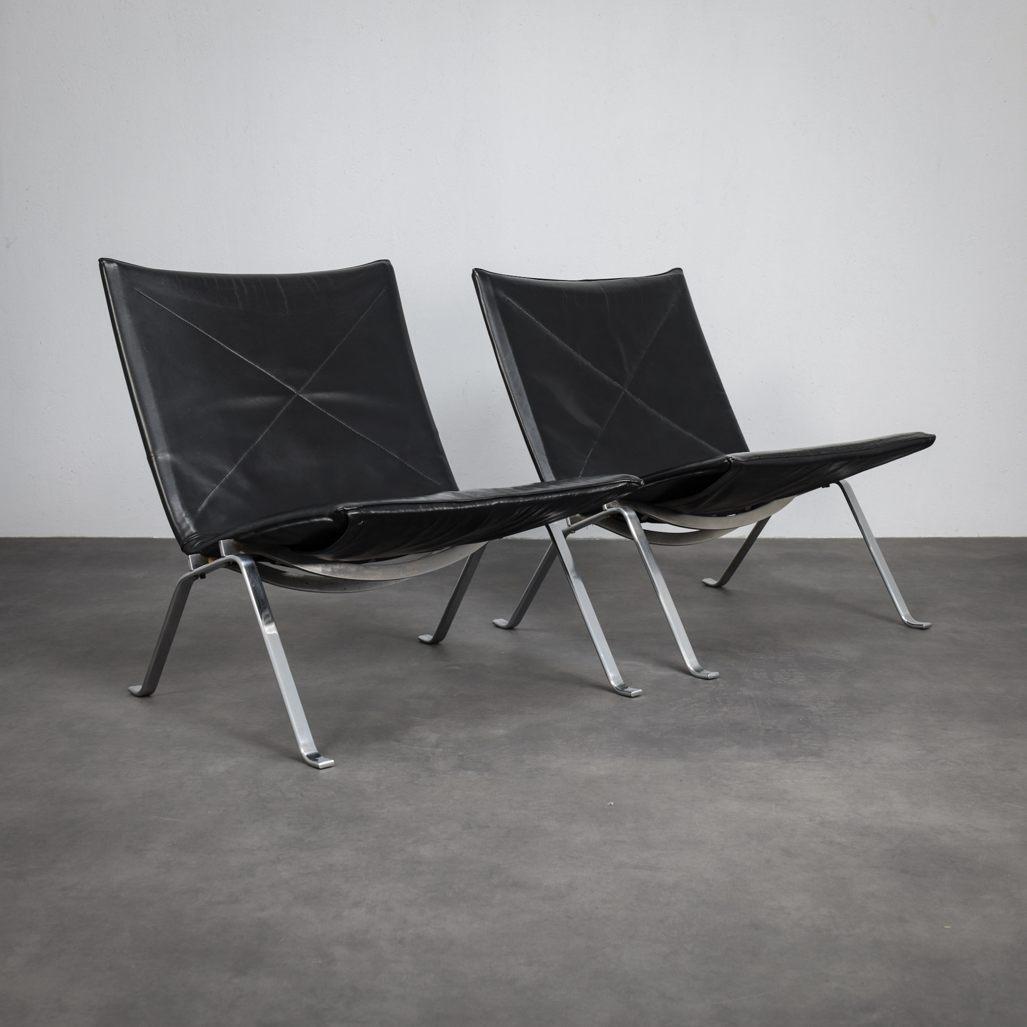 An exceptional and highly collectible pair of early PK22 lounge chairs, designed in 1958 by Poul Kjærholm and produced by E. Kold Christensen. This is a rare first edition set, originating from the first owner, a detail that significantly enhances both provenance and historical value.
