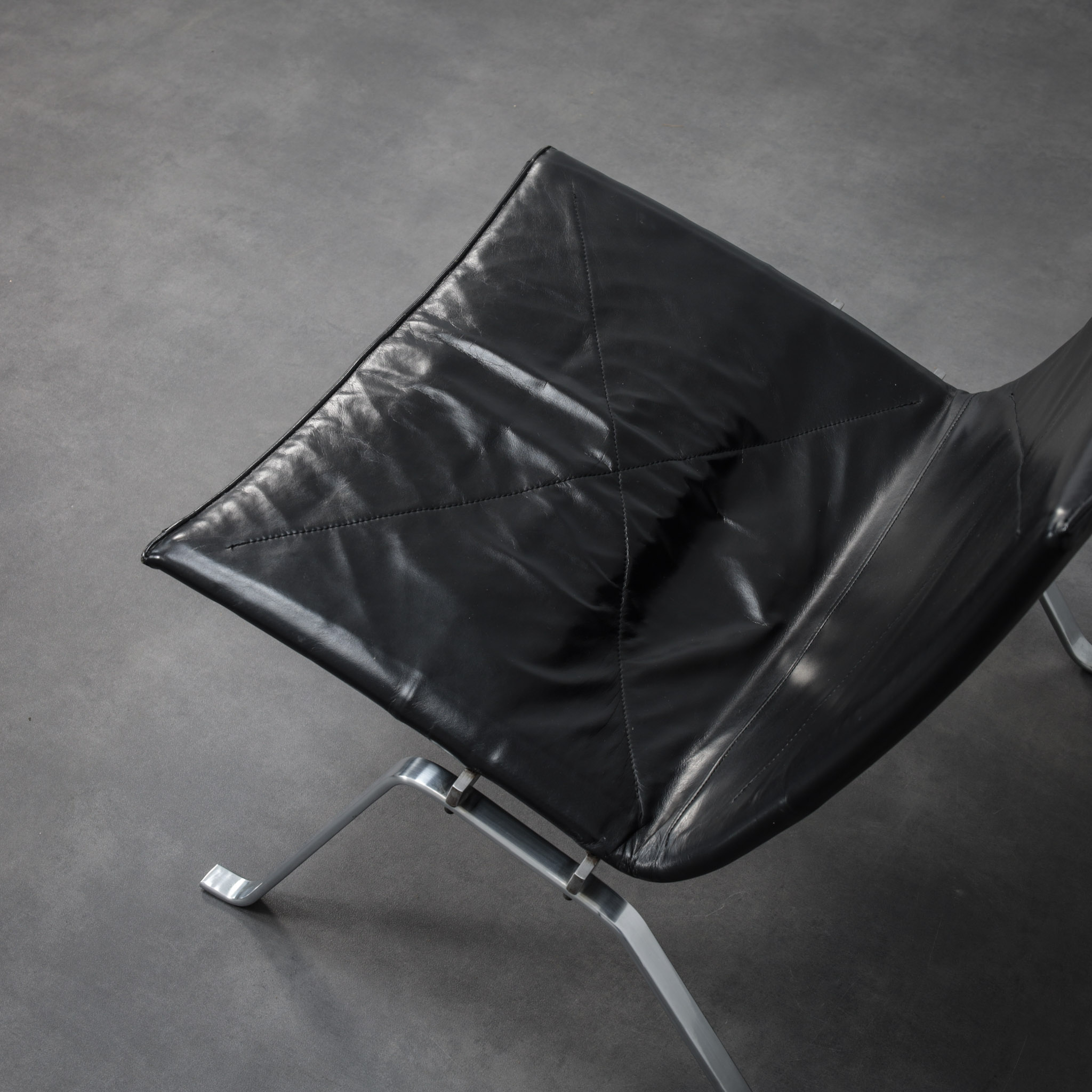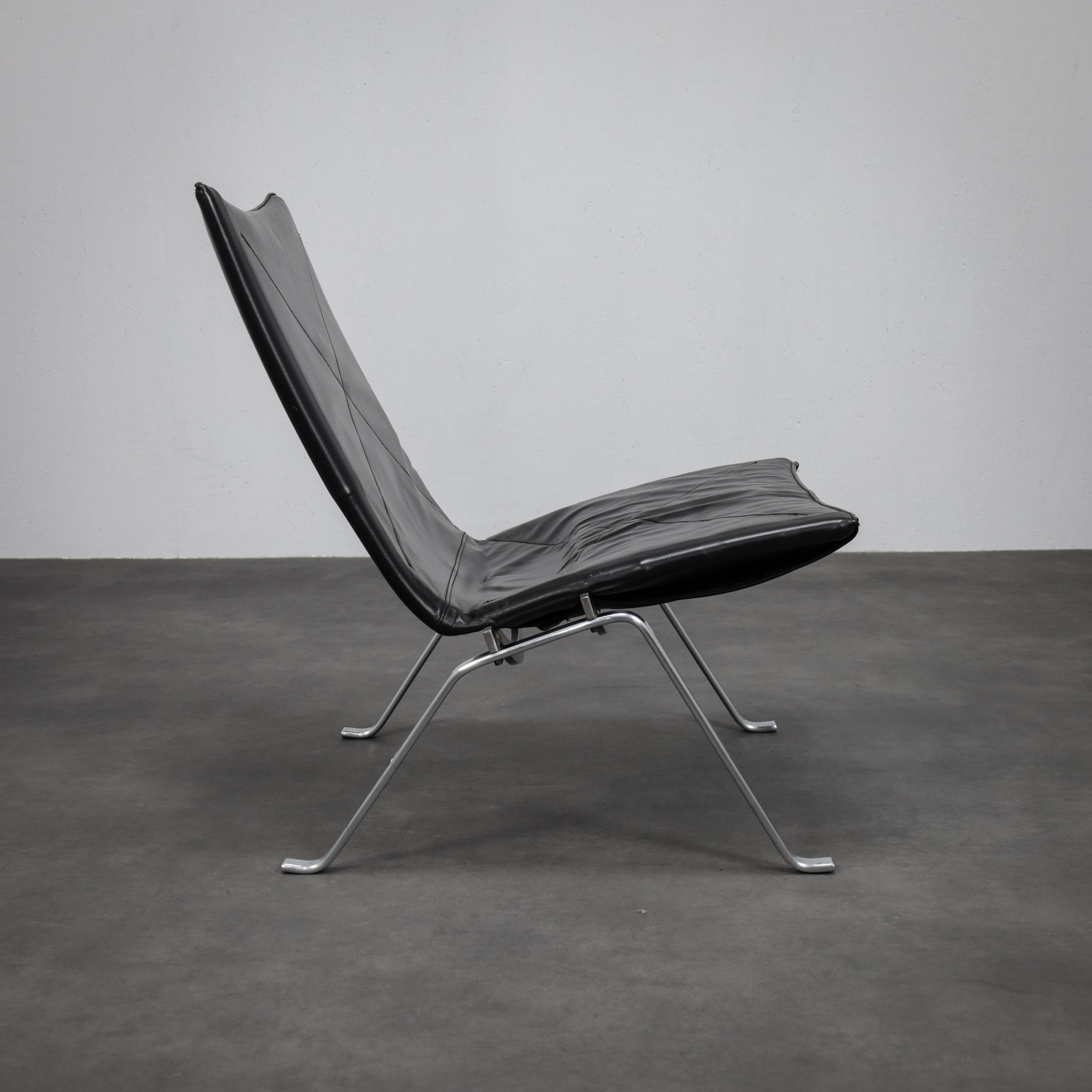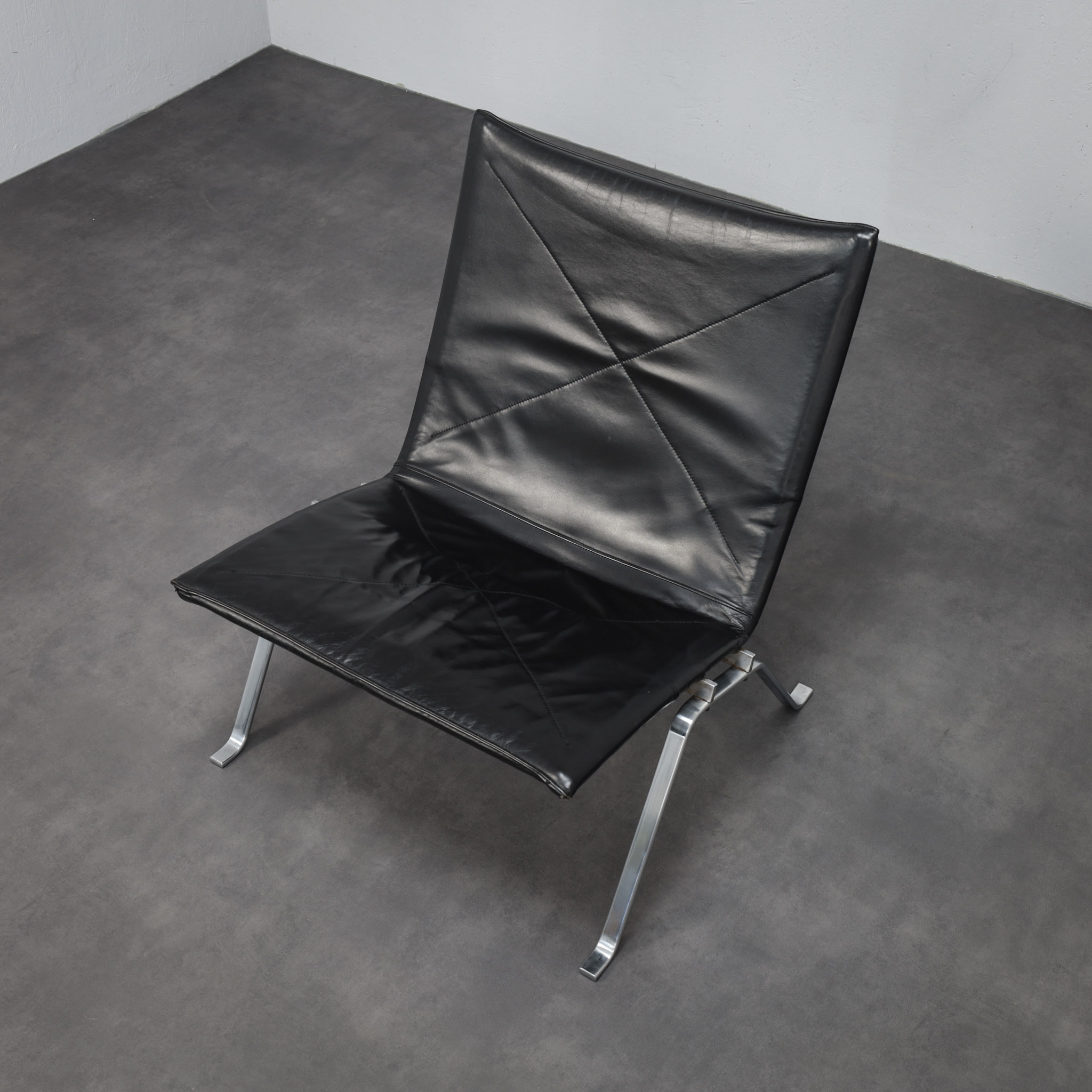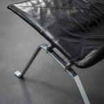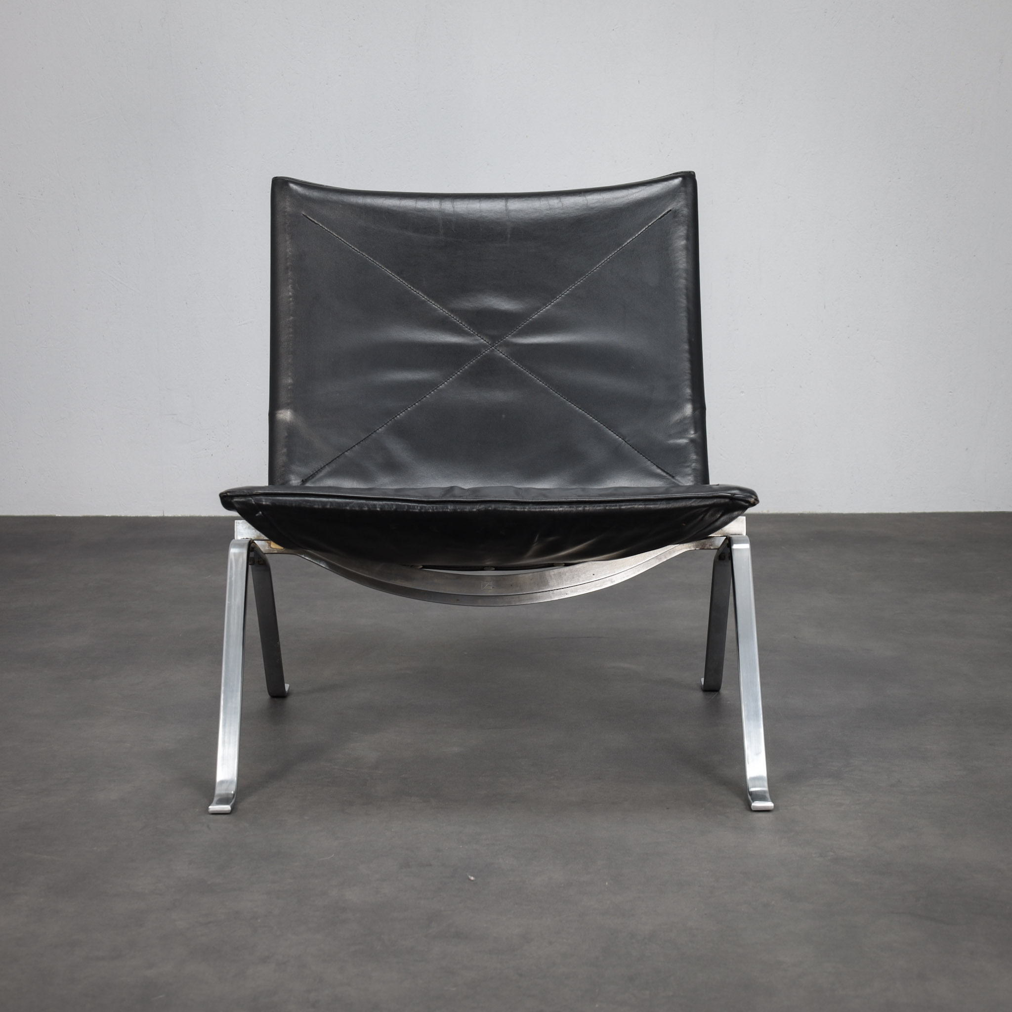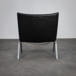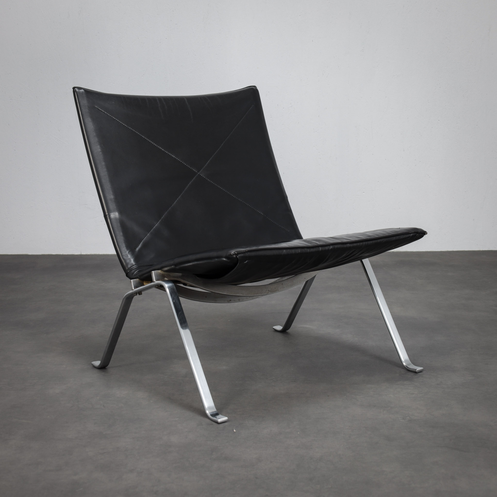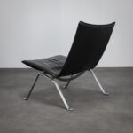 The black leather has aged beautifully, developing a soft patina that complements the subtle wear on the stainless steel frame. The visual lightness, low profile, and perfectly judged proportions make the PK22 a timeless modern classic, equally at home in minimalist interiors, curated design collections, or museum level settings.