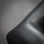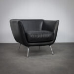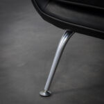 The sculptural curvature of the leather shell creates a sense of enclosure and comfort, while the slightly elevated stance gives the chair an elegant lightness. The proportions are carefully considered, resulting in a piece that feels both grounded and effortlessly modern.