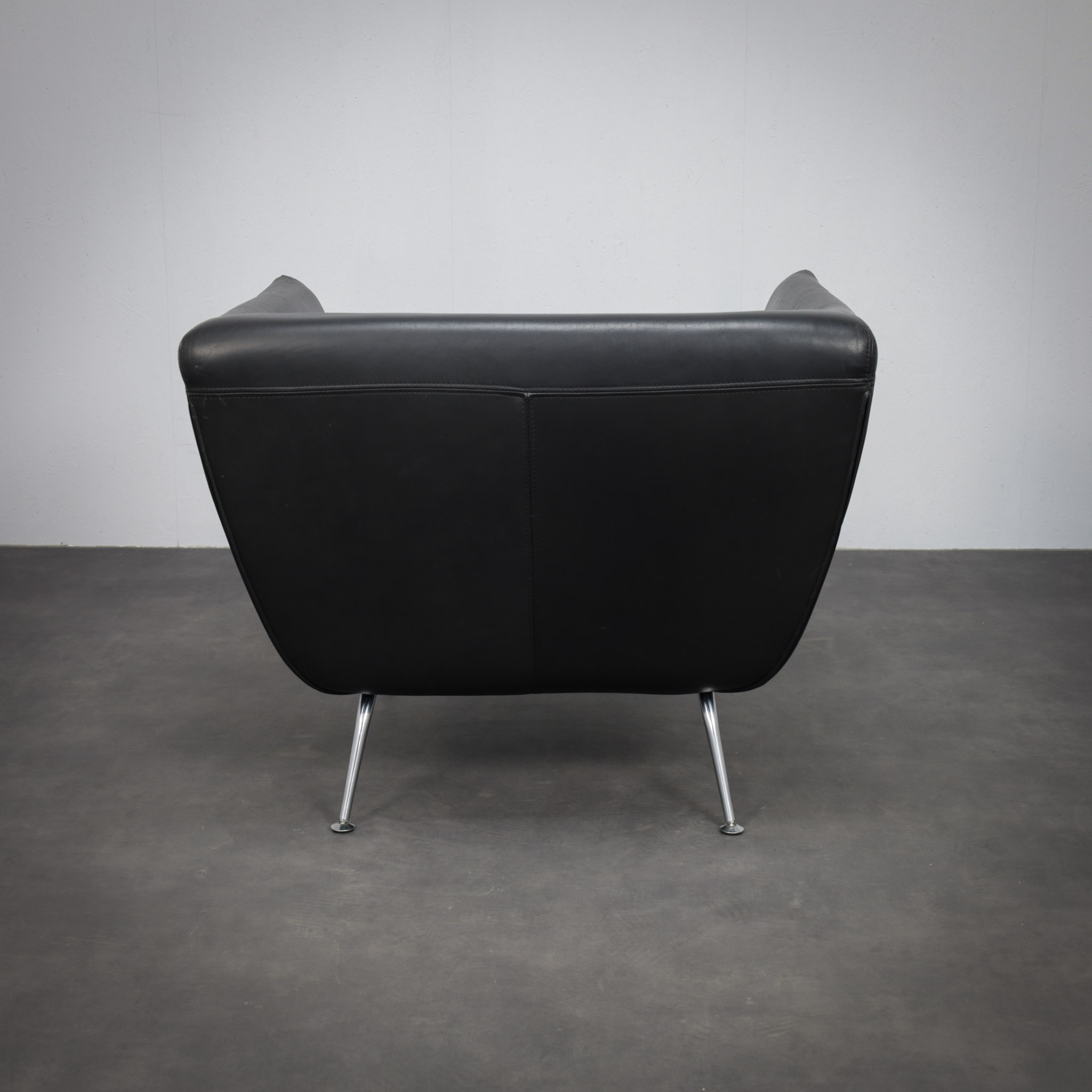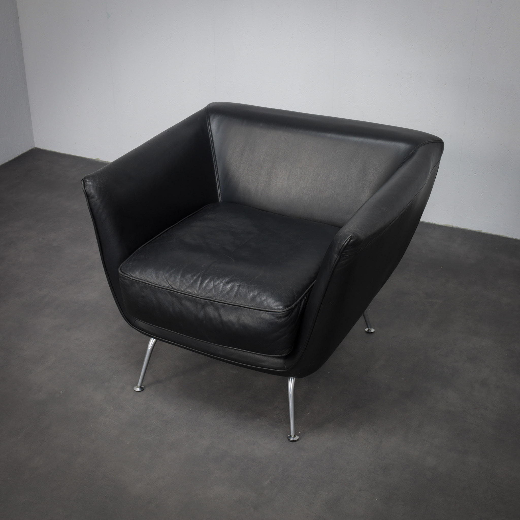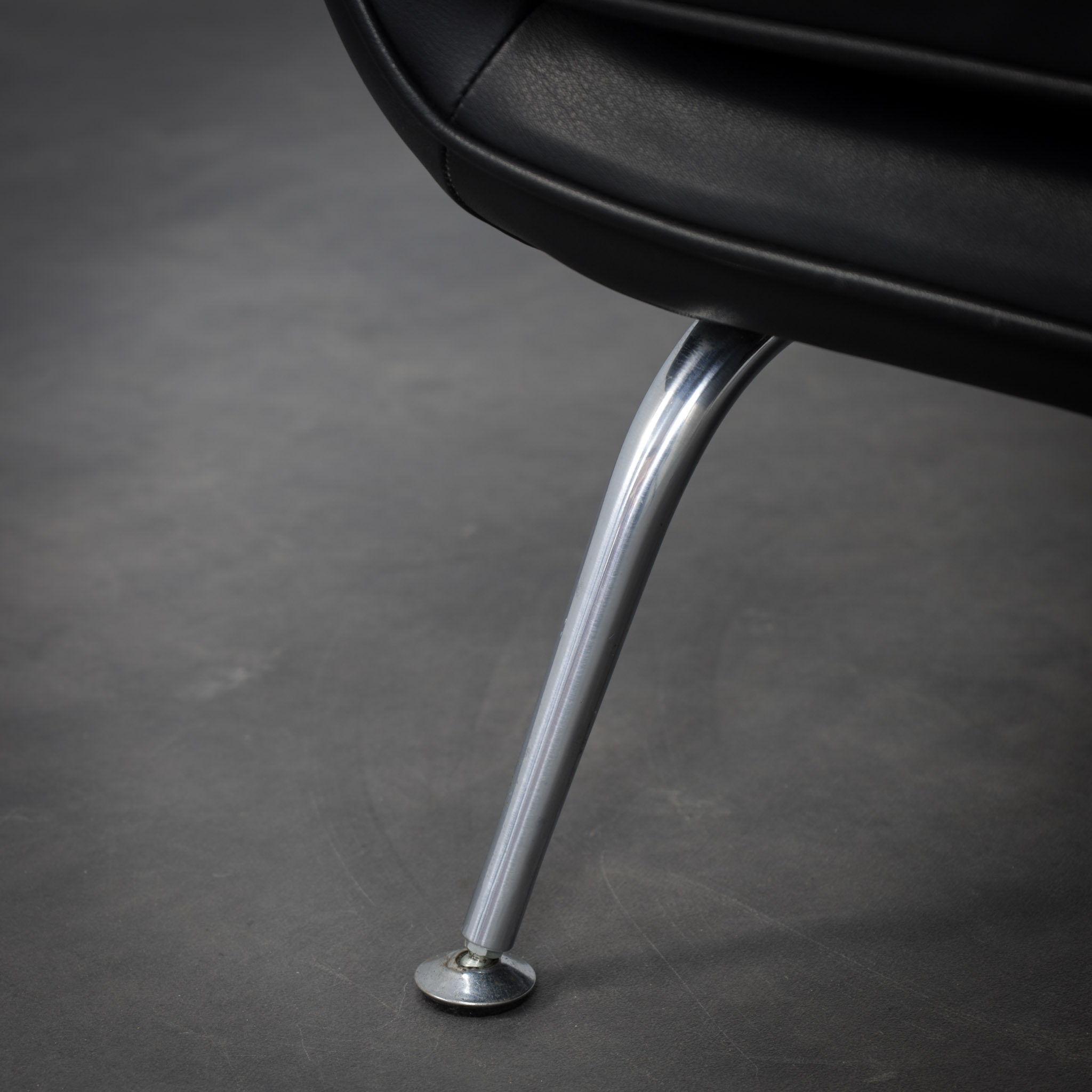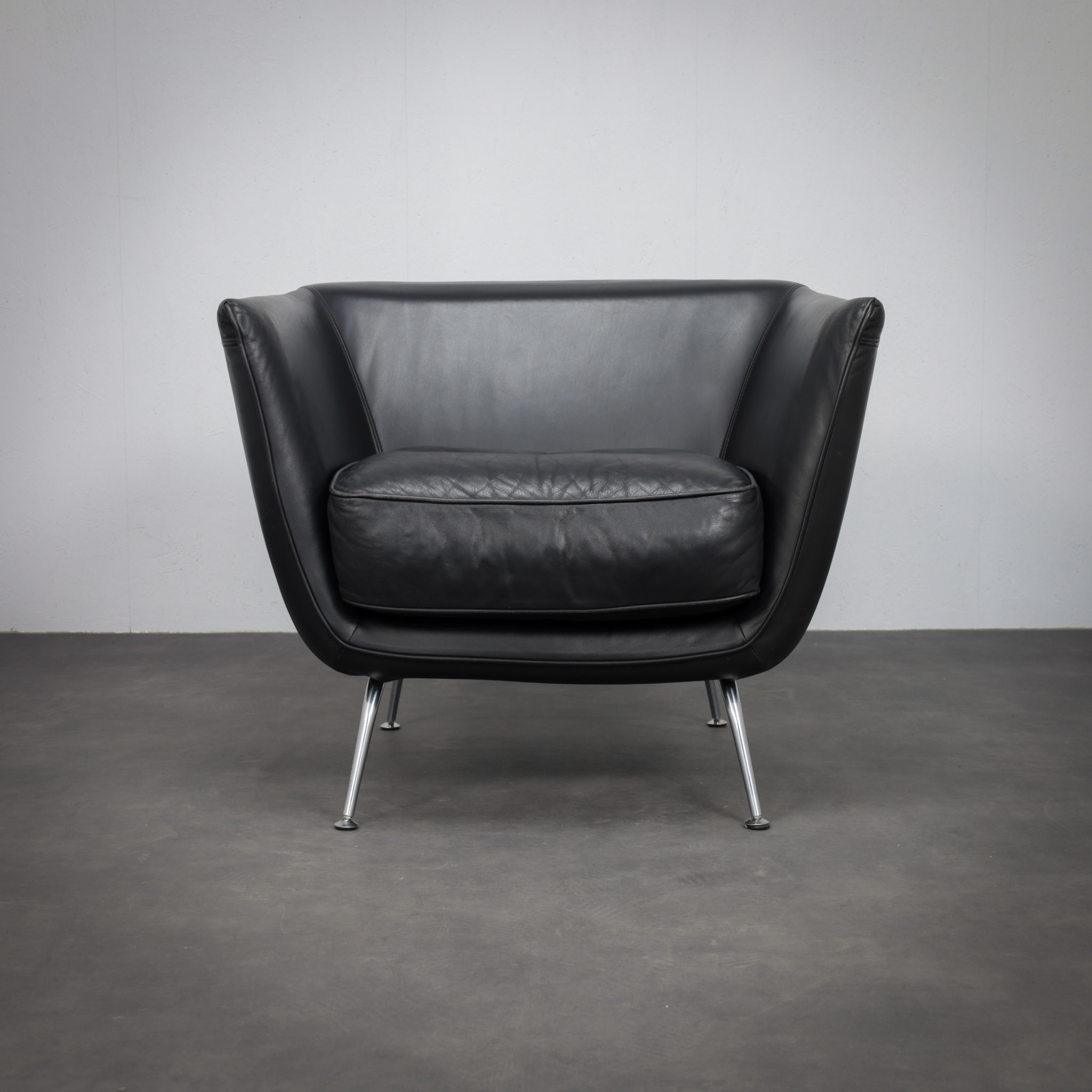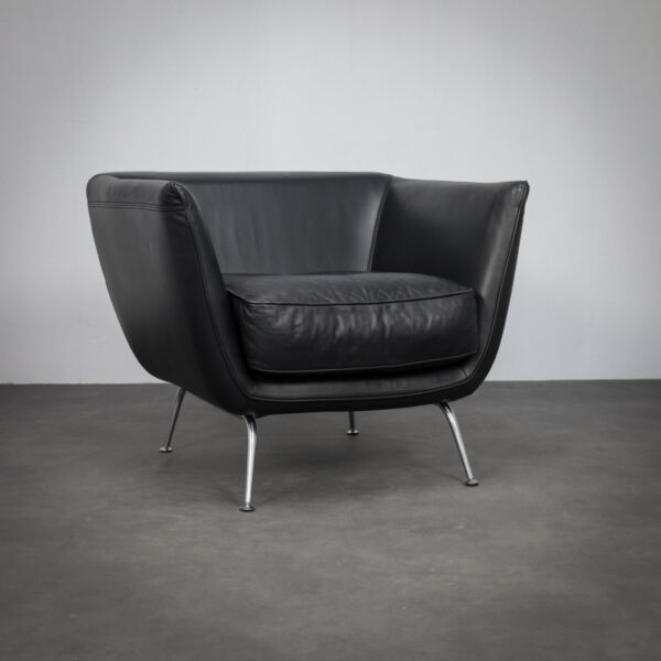 A refined and understated lounge chair by Dutch designer Stefan Steenkist, produced by Young International in the 1990s. The design is defined by its quiet confidence—where soft, generous volumes are held in balance by a slender, architectural metal frame.