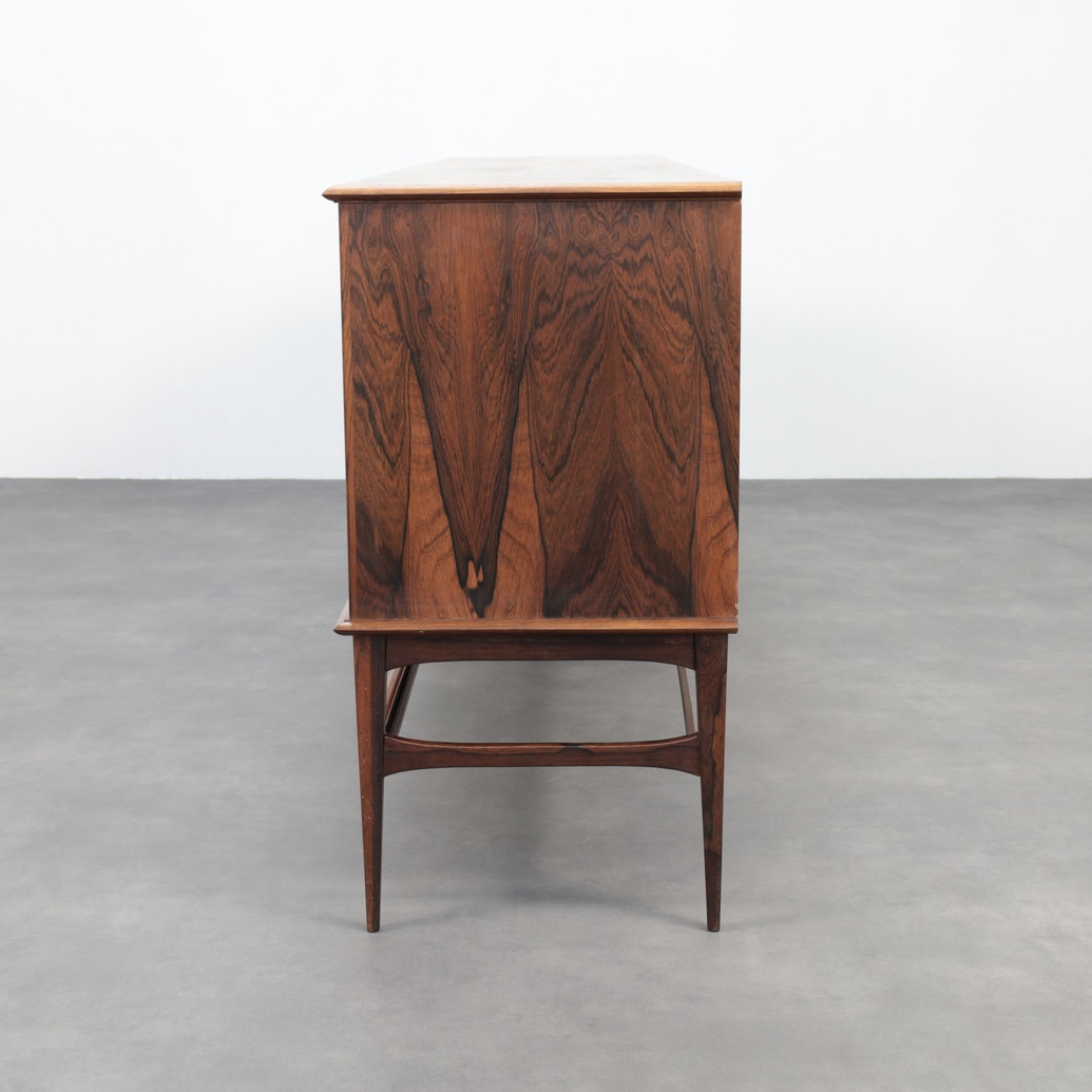 While the precise designer remains unidentified, this work embodies the qualities celebrated in Danish furniture of the 1960s: attention to proportion, the use of noble materials such as rosewood, and a focus on understated elegance. Makers of this era, including figures such as Arne Vodder, Ib Kofod-Larsen, and Johannes Andersen, shaped a global appreciation for Danish design’s quiet luxury.