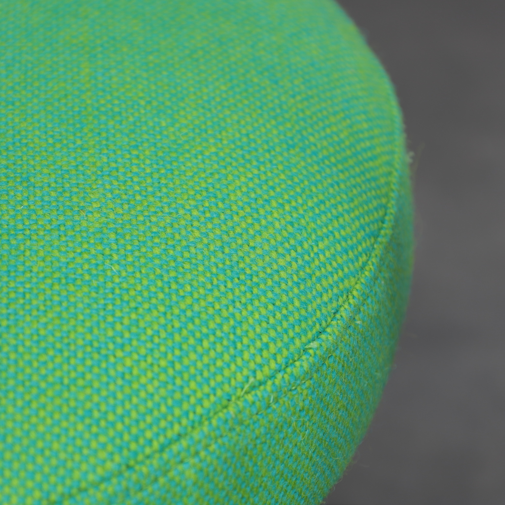 The newly reupholstered seats covered in high-quality 100% wool fabric by Danish Art Weaving—add a vibrant contrast with their fresh green tone, enriching the postmodern character of the design. The combination of color, material and form results in a pair that feels both artistic and functional, ideal for statement interiors, boutique settings or contemporary living spaces.