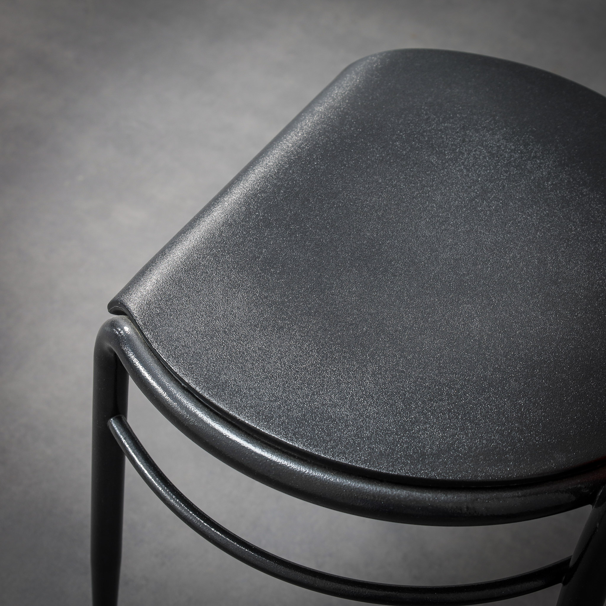 The use of polyurethane for the backrests adds a smooth, almost lacquered appearance, enhancing the sculptural quality of each chair. Combined with the light metal construction, the design feels both expressive and refined.