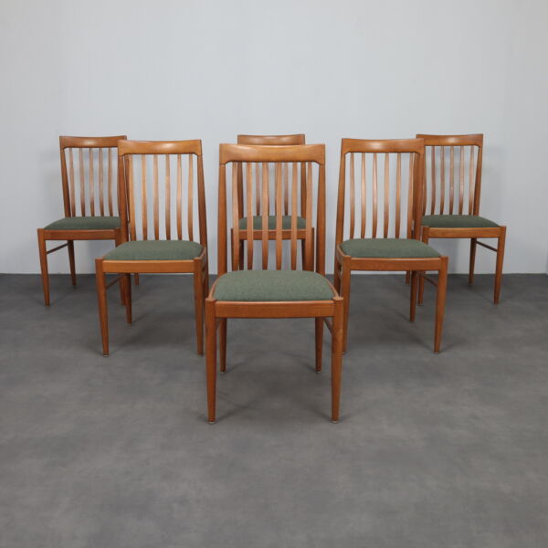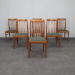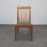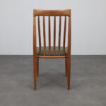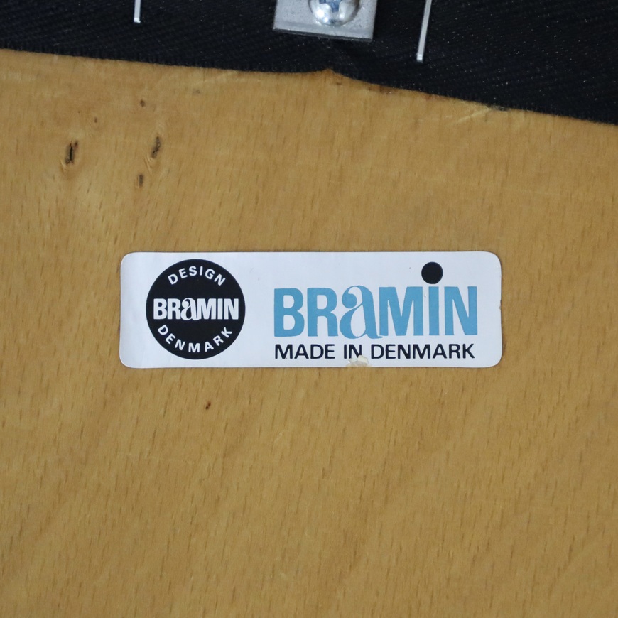 The sculptural, curved backrest with vertical slats gives the chairs a sense of rhythm and lightness, while the slender legs and organic transitions show the attention to detail typical of Bramin’s production during this period. The overall impression is one of quiet elegance and enduring comfort.